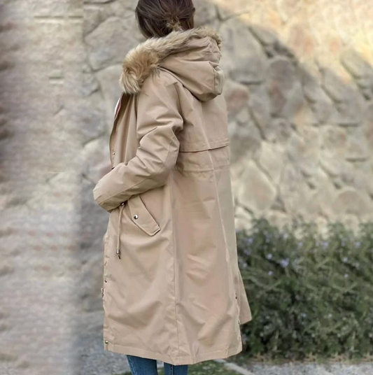 Parka informal con cuello de piel y capucha de invierno para mujer